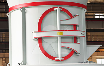 破碎后合格的物料,經(jīng)變頻皮帶給料機(jī)均勻定量連續(xù)地送入主機(jī)磨室內(nèi)進(jìn)行研磨。粉磨后的物料被風(fēng)機(jī)氣流送入選粉機(jī)進(jìn)行分級,在分析機(jī)的作用下,不符合細(xì)度要求的物料落入磨室內(nèi)重新碾磨,合格的物料則隨氣流經(jīng)管道進(jìn)入旋風(fēng)集粉器內(nèi),進(jìn)行分離收集,經(jīng)排料裝置排出即為成品粉體。分離后的氣流通過旋風(fēng)集粉器上端回風(fēng)管進(jìn)入風(fēng)機(jī)。該系統(tǒng)在負(fù)壓狀態(tài)下運(yùn)行,設(shè)備配有脈沖除塵器,符合國家環(huán)保標(biāo)準(zhǔn)。