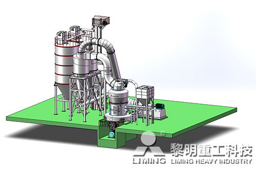 破碎后合格的物料,經變頻皮帶給料機均勻定量連續地送入主機磨室內進行研磨。粉磨后的物料被風機氣流送入選粉機進行分級,在分析機的作用下,不符合細度要求的物料落入磨室內重新碾磨,合格的物料則隨氣流經管道進入旋風集粉器內,進行分離收集,經排料裝置排出即為成品粉體。分離后的氣流通過旋風集粉器上端回風管進入風機。該系統在負壓狀態下運行,設備配有脈沖除塵器,符合國家環保標準。