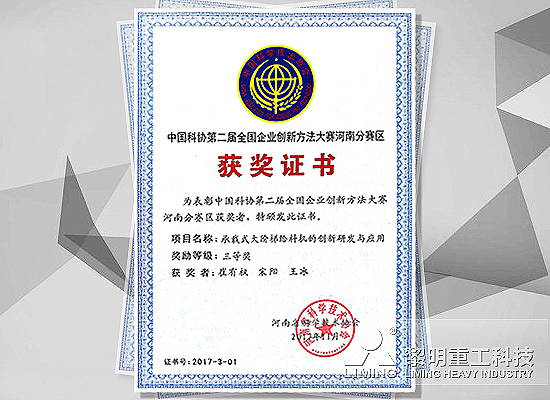 黎明重工榮膺第二屆全國企業(yè)創(chuàng)新方法大賽(河南賽區(qū))三等獎(jiǎng)
