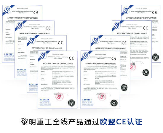CE認證的接受對象包括德國、意大利等歐洲制造業強國,不僅是歐盟,也是全球有權威性的認證標準之一,標志著產品已經達到了歐盟指令規定的安全要求,是企業對消費者的一種承諾,也是鑒別品質良好產品的主要標志。黎明重工出品的礦山機械設備集體獲得CE認證證書,標志著在未來的市場競爭中,來自中國的機械制造商將在歐洲市場發揮更多的技術優勢和成本優勢。