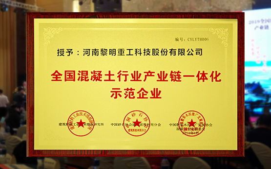 黎明重工獲“全國(guó)混凝土行業(yè)產(chǎn)業(yè)鏈一體化示范企業(yè)”殊榮