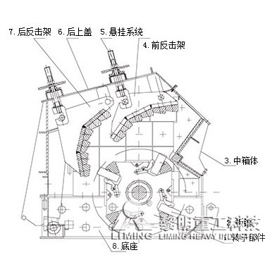 反擊破由機(jī)殼、轉(zhuǎn)子和反擊板組成。